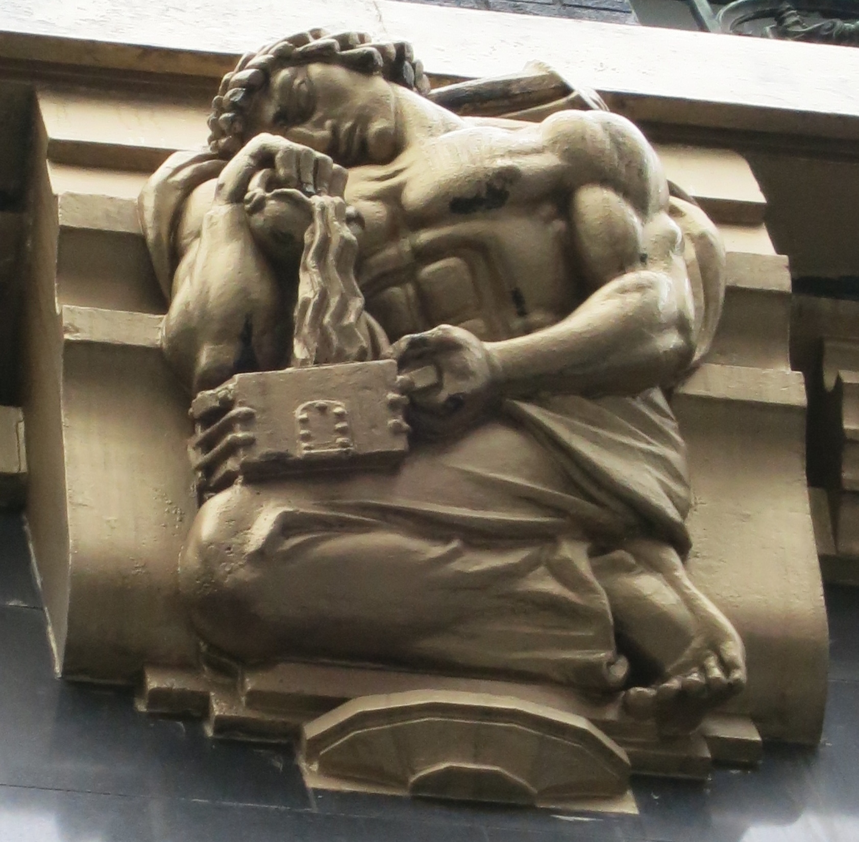 Image: Bronze-carved allegory symbolizing the transformation of matter into energy on the Art-Deco American Radiator Building, 40 West 40th Street, Manhattan, New York City